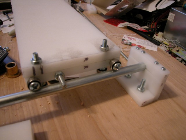 Rollers on the first axis. There are just four bearings in contact with the each 1/2" bar. I may add an additional bearing to keep it solidly located. |