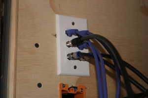 Inside, I added low voltage, open backed boxes and keystone cat5e and coax jacks. I bought all my jacks and wallplates from monoprice.com. |