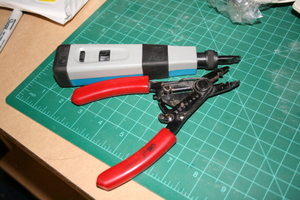 Tools![]() | All the network termination was done with a punchdown tool and a pair of wire strippers. I use the strippers to remove the sheath, then the 110 style punchdown tool with the cutting edge to terminate the wires into the jacks and patch panels. |