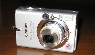 The Canon Digital Elph S500 is a few years old, but has one excellent feature: it's small. It's also inexpensive since it's an older model. Ebay pricing now ranges from $20 for a damaged unit up to $100 for a perfect one. |