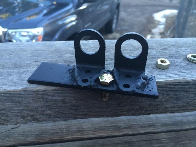 Then I drilled the center of my new bracket and fitted a new bolt.